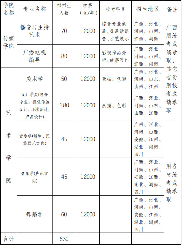 2019年广西民族大学艺术类专业招生简章