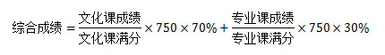 6、考生所在省级招办按照有关规则进行投档,进档考生按照文化课成绩(满分750分)占70%,专业课成绩(满分折合成750分)占30%的比例计算综合成绩,从高到低排队(文理合并公布招生计划或注明“文理兼招,统一排队”的省份,文理科考生统一排队),根据考生所在省份的招生计划,择优确定拟录取名单,考生高考综合成绩相同时,专业课成绩高者优先。
