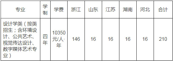 专业名称:设计学类;招生计划210名;艺术类分文理科的省份仅面向艺术类文科考生招生,不分文理科的省份不作文理科报考要求,分省计划如下:
