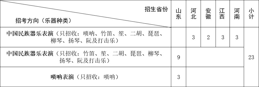 注:2021年,中国民族器乐表演方向在山东省分中国民族器乐表演和唢呐表演2个方向招生,请仔细对照具体的招考方向与计划数量。