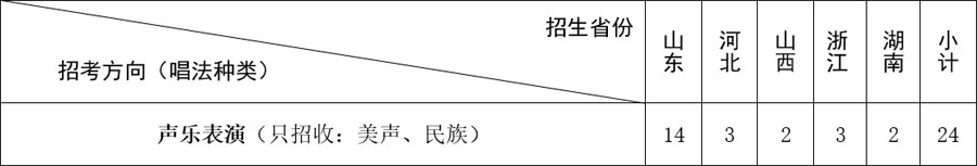 3.参加生源所在省级招生主管部门组织的艺术类专业统考(山东省音乐学专业为校级联考,以下简称联考)成绩合格。其中,音乐学专业测试主项(主科、专项等,下同)乐器或唱法须与我校招考方向要求相一致。