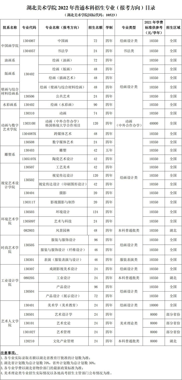 1.湖北省考生志愿批次为艺术本科A平行志愿,具体录取规则按照湖北省招办政策执行;
