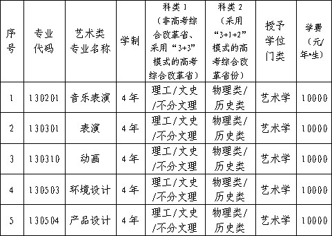 学费按照省物价部门批准的标准向学生收取,艺术类各专业收费标准已在“三、艺术类专业设置说明”表中具体列明。