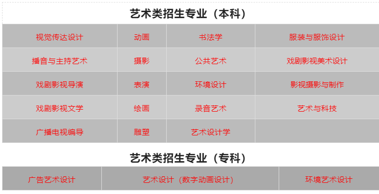 广告艺术设计 艺术设计(数字动画设计) 环境艺术设计