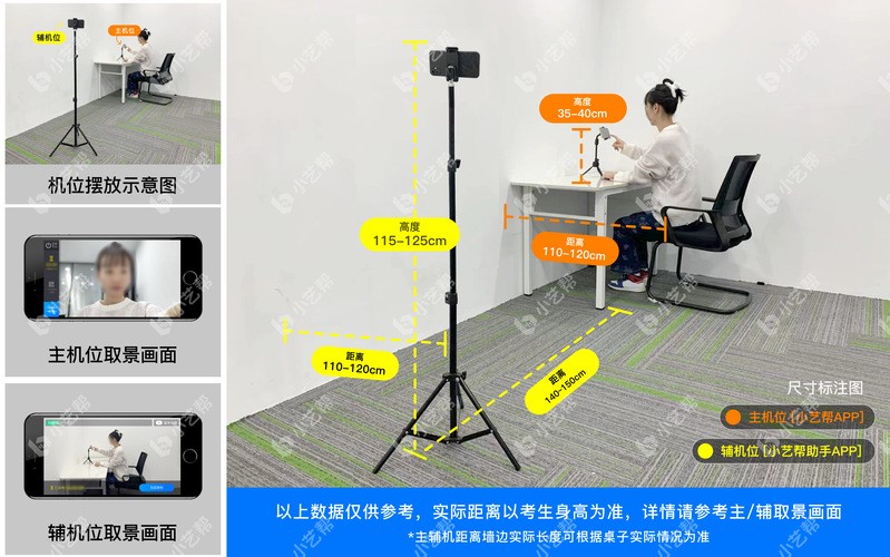 1. 考试终端为两部智能手机,考生仅可使用两部手机完成考试。采用双机位考试模式,一部手机用于考试作答(主机),一部手机用于考试实时直播监考(辅机)。