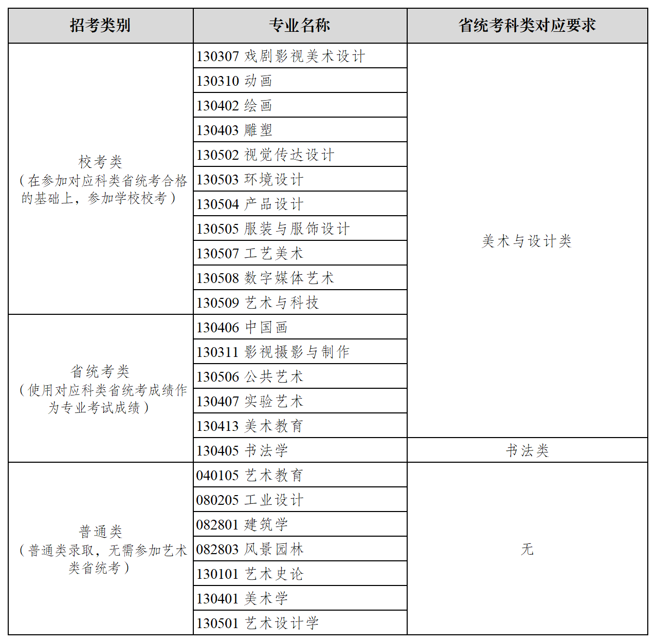 各省美术高考分站四川美术学院关于2026年本科招生专业、类别及省统考科类对应要求的公告